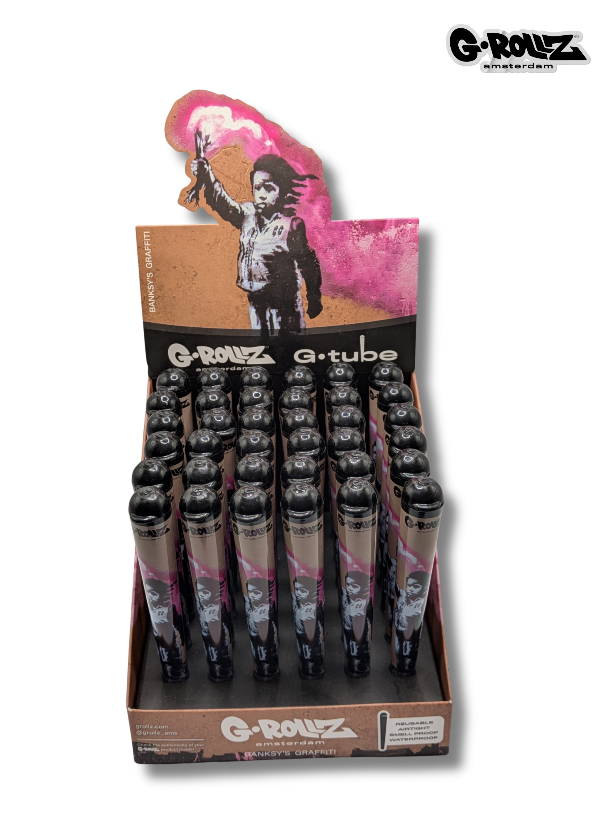 Le G-Tube Banksy de la marque G-Rollz est un accessoire fumeur conçu pour stocker et transporter vos joints ou cônes pré-roulés en toute sécurité.
