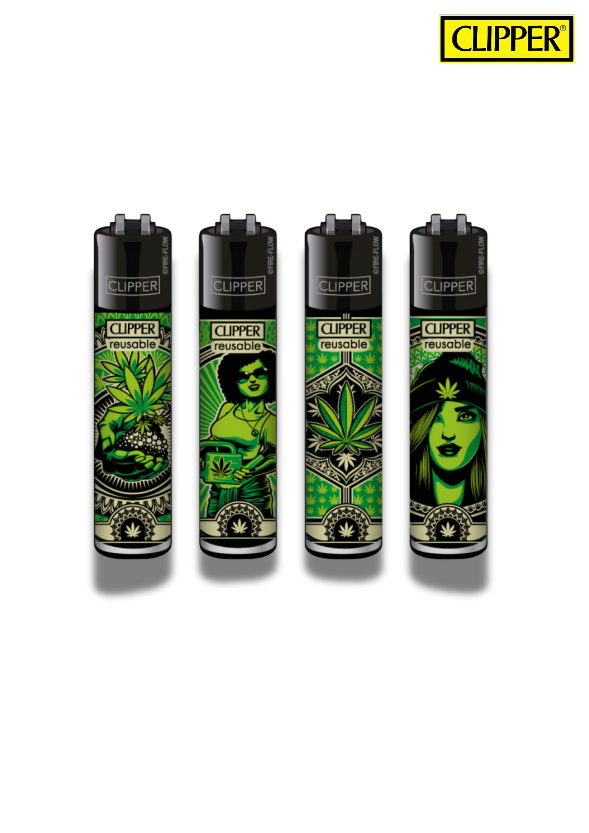 Briquets Clipper classic de la série Grass Art mettant en avant des illustrations végétales stylisées, dans un esprit graphique et coloré, parfait pour les amateurs de design et de culture alternative.