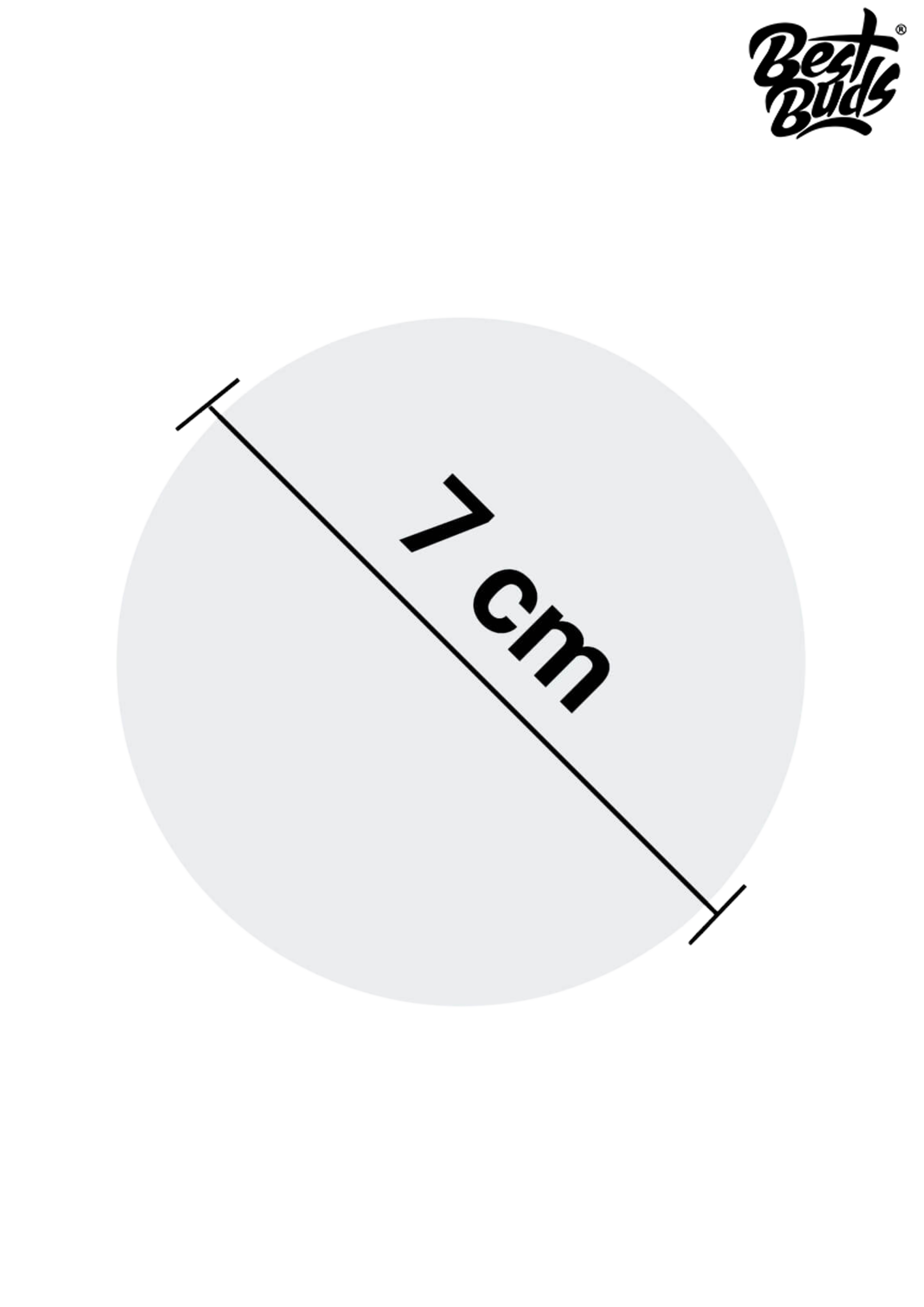 Le visuel Best Buds est imprimé ou moulé directement sur le silicone, avec des motifs colorés et décalés, fidèles à l’univers graphique de la marque.