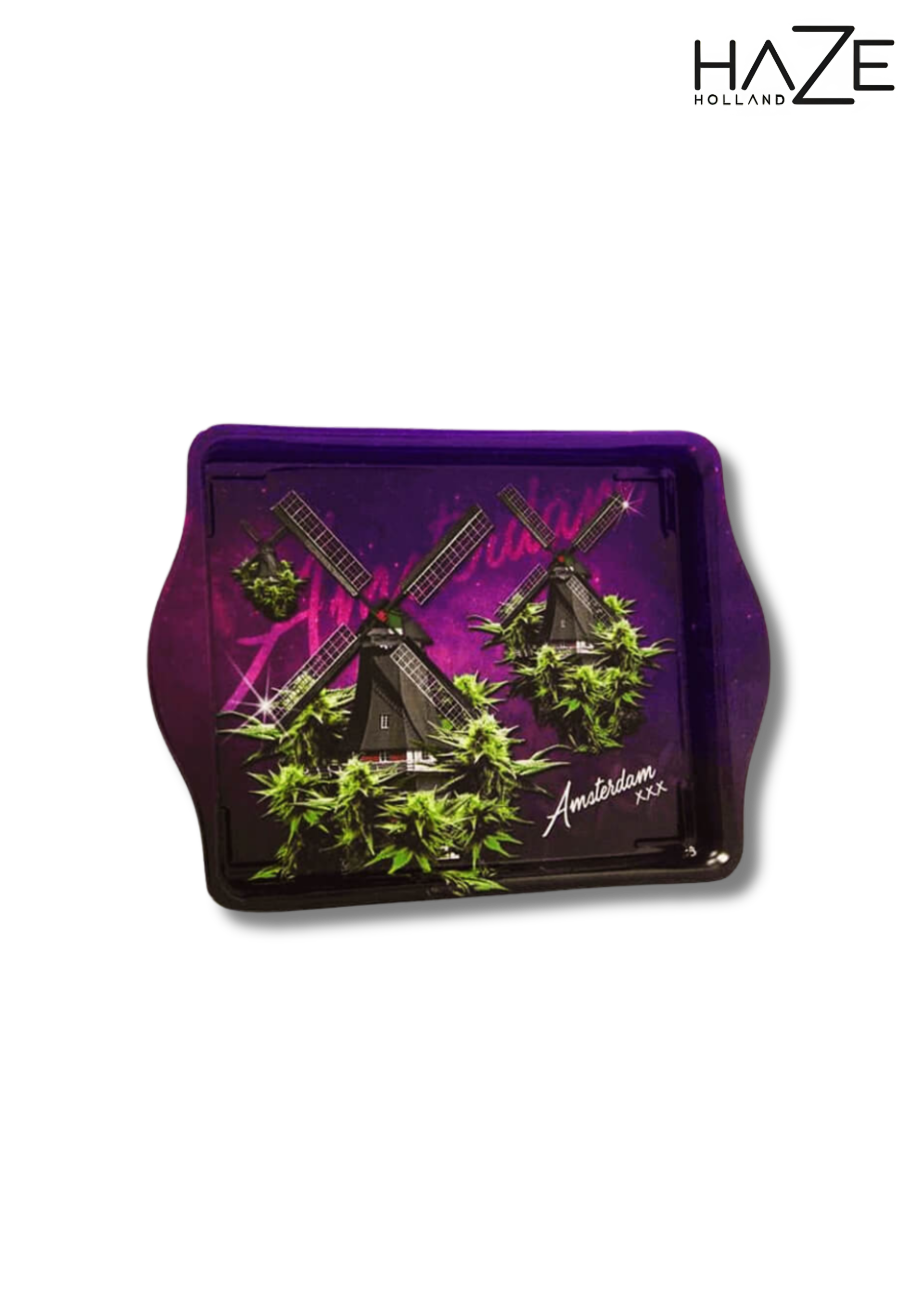 Apportez une touche hollandaise à vos sessions avec le plateau à rouler Haze Holland "Moulins à vent". Compact et pratique, ce petit plateau en métal arbore un design inspiré des emblèmes traditionnels des Pays-Bas, parfait pour les amateurs de culture et de style.