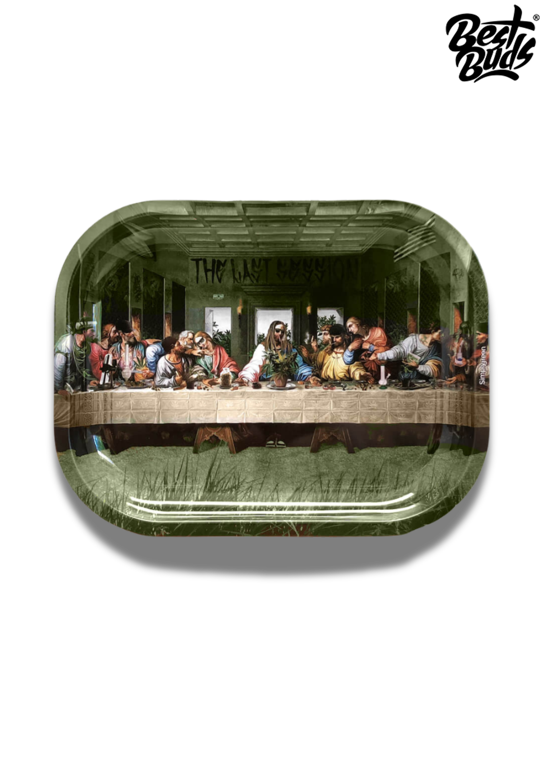 Le plateau à rouler Best Buds "The Last Session" revisite avec humour la célèbre fresque "La Cène" dans une version décalée et moderne, où les personnages partagent une session bien particulière.